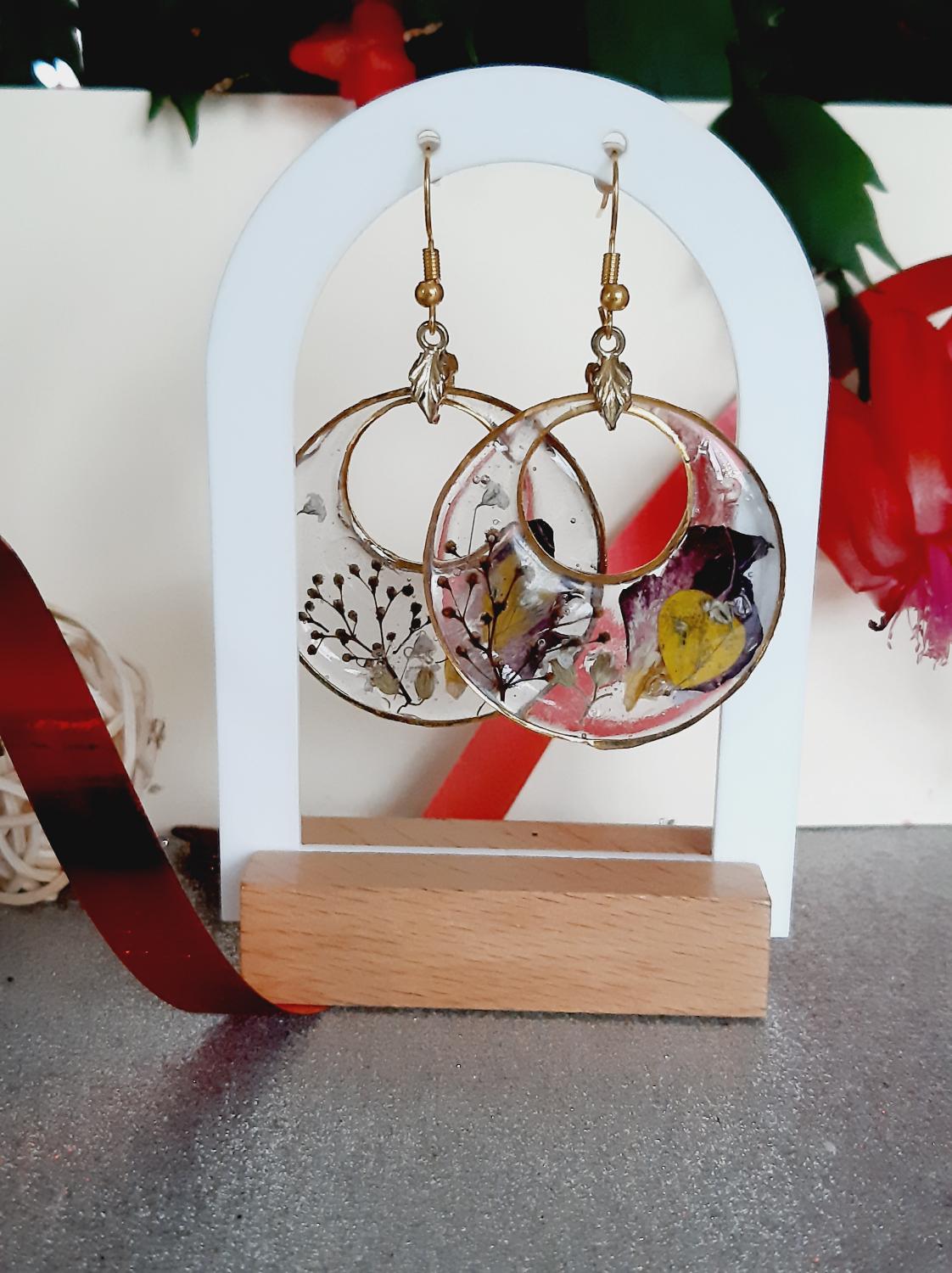 Boucles d’oreilles « Jardin Secret » – de luxe, Fleurs séchées & résine